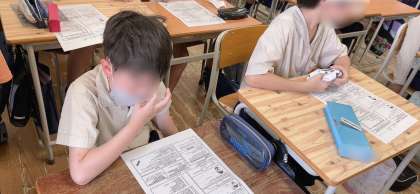 4・5年生が「折れない心を育てる 命の授業」の出前授業を受けました。「苦しみ」とは何かを論理的に考え、それを克服できる「支え」について学んだり、苦しんでいる人にできることを考えたりしました。とても真剣に取り組んでいました。