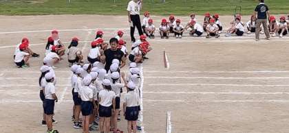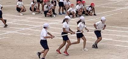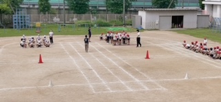 合同体育です。団体競技の練習をしていました。並び方や進め方などを確認していました。
