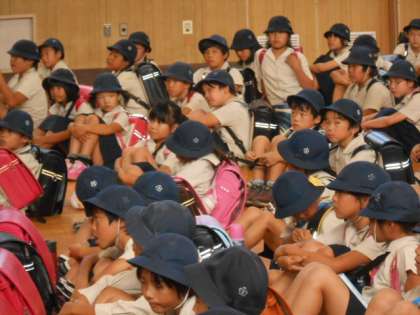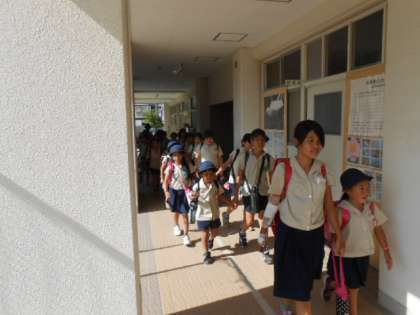 今日は、台風接近による避難訓練を行いました。この夏も大阪をはじめ大きな被害がでました。特別警報も出る可能性があります。安全に下校できるように集団下校も実施しました。備えあれば憂いなし!