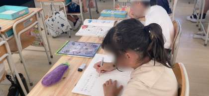 算数の学習です。重さの単位の学習です。1,000gを1Kgと表すことを知りました。生活に直接関わるところですね。
