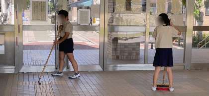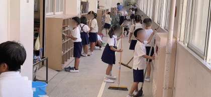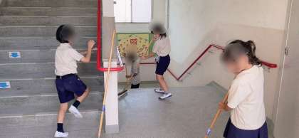 清掃活動の時間です。教室だけでなく、校内の色々なところをきれいにできるよう頑張っていました。