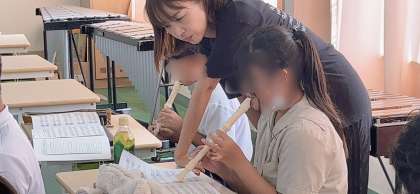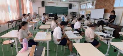 音楽の学習で「カントリーロード」のリコーダー演奏の練習をしていました。高音パートと低音パートにわかれての合奏を目指しています。練習の成果を聴くときが楽しみです。