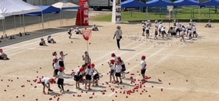 合同体育で運動会団体競技の練習をしていました。本番さながらの熱さで練習していました。