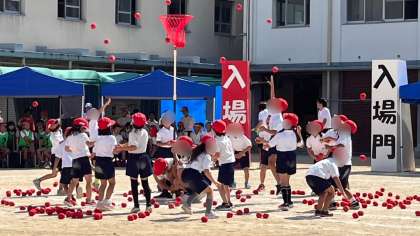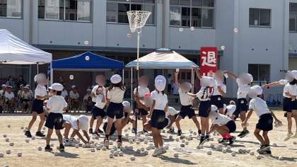 1・2年生の団体競技「玉入れ」です。1年生も2年生も一所懸命頑張っていました。