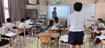 算数の図形の学習です。図の拡大や縮小について考えていました。既習事項の「比」が役に立つことがわかりました。