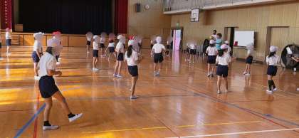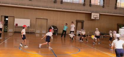 1・2組合同の体育でした。準備運動をしっかりして、今日は、ドッジボール大会でした。