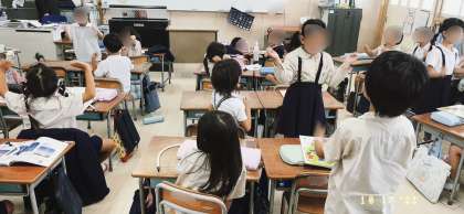 音楽の学習です。「ジャンケンポン」のリズム曲に乗ってジャンケンゲームを楽しみました♪