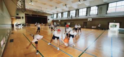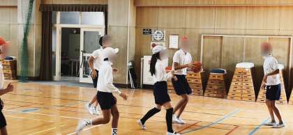 体育の学習で、バスケットボールのゲームをしていました。チーム練習を重ねているので、少しずつレベルが上がっているように思います。