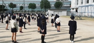 全校朝会では、学校長から好奇心をもって過ごしましょうという話と生活指導担当からあいさつをしっかりしようという話がありました。