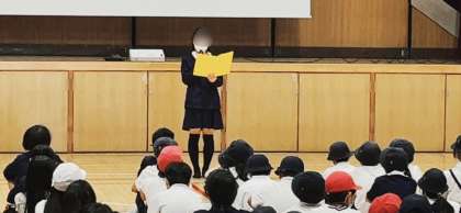 昨日の午後、春日出中学校で春日出中学校下3小学校児童対象の体験入学があり、本校6年生も参加しました。最初に体育館で開会式があり、春日出中生徒会の皆さんによる学校紹介や各小学校の学校紹介がありました。