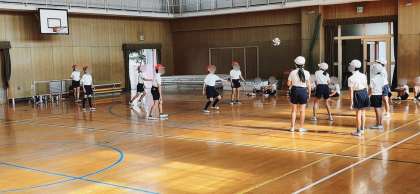 1・2組合同で体育をしていました。体育館でプレルボールのゲームをしていました。まだぎこちなく、ラリーがなかなか続かないことが多かったようで、これから、チーム練習や個人練習を重ねて上達していこうと意気込んでいました。
