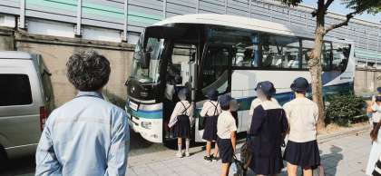 5年生が社会見学に出発しました。島屋にある日本製鉄の工場見学です。普通は観られない所をたくさん観せていただきます。しっかり学習してきてくださいね。