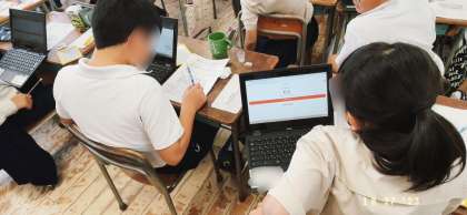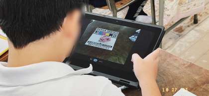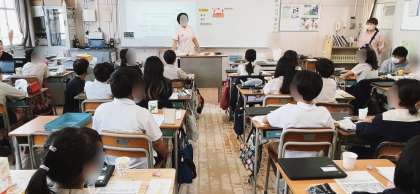 学校歯科医さんと歯科衛生士さんにきていただいて歯の健康についての学習をしました。フッ化物を歯に塗布したあと、キシリトールガムとタブレット端末を使って咀嚼についての実験もしました。