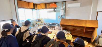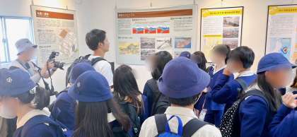 震災の為傾いたまま保存された家屋(一部の部屋は中もそのまま保存されていました)や地震についての展示スペースなど興味津々で観て回っています。