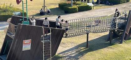 瓦粘土細工が完成した人はパーク内の広場や大型遊具で遊んでいます。