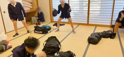 朝食までの短い間、荷物整理をします。できている子はくつろいでいます♪