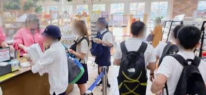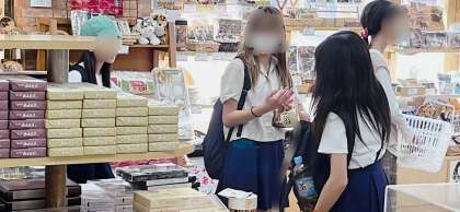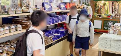 土産物屋さんで家族へのお土産を探しているのでしょうか。この時間もとても楽しいものです。