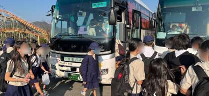 一行は、予定時刻より10分ほど遅れて姫路セントラルパークを出発しました。遊園地ではいろいろな乗り物に何回も乗れて大満足でした。