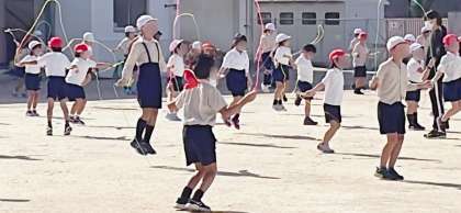 今日は、1・3・5年生の日です。音楽に合わせて元気いっぱい跳んでいます。