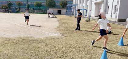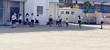 体育の学習で50m走の記録を計っていました。春にも計っているので、記録が伸びているかどうかがすごく気になるようで、走り終わったらすぐに先生に駆け寄って記録を聞いていました。