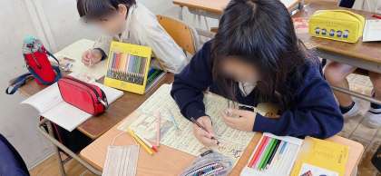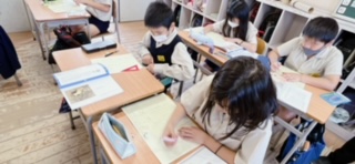 国語の学習で、「ごんぎつね」のリーフレット作りが進んでいます。挿し絵も綺麗に着色しています。