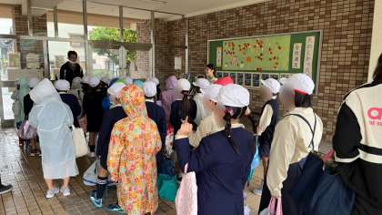 2年生が社会見学に出かけました。尼崎城と尼崎図書館の見学です。あいにくの雨で傘や合羽を使っての移動になるので大変でしょうが、しっかり学習してきて欲しいです。