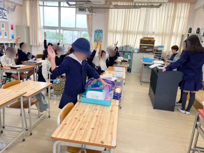 水曜日は健康チェックの日です。今日も健康委員会の皆がそれぞれの教室でチェックしています。