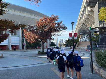 11月16日(木)です。今日は、6年生が大阪市スポーツ交歓会に参加しに長居のヤンマースタジアム長居に来ました。