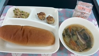 今日の献立は、焼き焼売、中華味噌スープ、ツナと野菜のオイスターソース炒め、黒糖パン、牛乳でした。学習発表会終わりでお腹ぺこぺこ、とても美味しくいただきました。ごちそうさまでした。