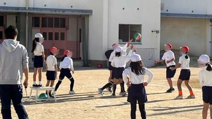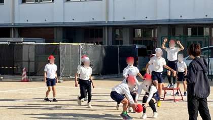 体育の学習です。ポートボールのゲームをしていました。いいお天気でゲームも白熱しました。