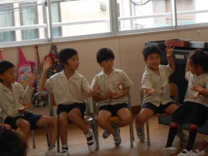 5時間目、1年生は教室で楽しい学級活動をして盛り上がりました。