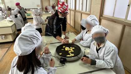 2年生がお芋パーティーを開きました。自分たちが学習園で育てたさつまいもを収穫し、適当な大きさに切ってホットプレートで焼いて食べました。とっても美味しかったです♪