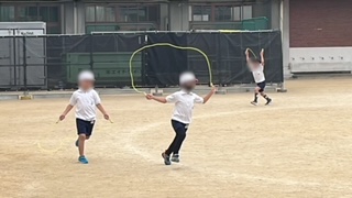 今日は縄跳びでトラック一周走っていました。