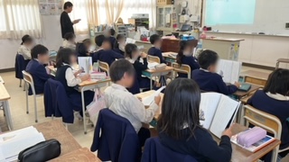 下段は2組、国語の学習で、先生の範読を静かに聴いていました。