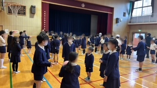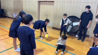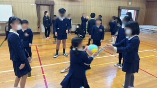 今日の児童集会は体育館で「ごろごろどっかん」をしました。輪になってリズムに合わせてボールをまわし、リズムが止まったときボールをば持っていた子が輪の中に入るゲームです。どの班も楽しそうでした。