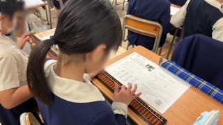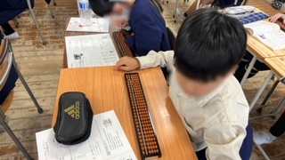 算数の学習で、そろばんを使って小数のある足し算の計算をしていました。そろばんは3年生で習っていたのですが、悪戦苦闘している子もいました。