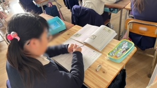 国語の学習です。物語文の読み取りをプリントを使って考えていました。