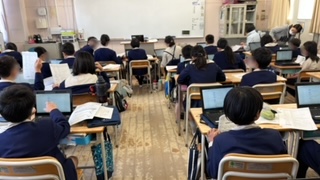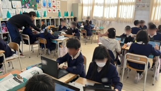 本校は、市教育委員会から依頼を受けてスタディサプリの試験導入をすることになりました。児童一人ひとりのタブレット端末にスタディサプリが繋がるよう設定が必要です。早速、3年生と5年生が接続設定をしていました。上段と中段が5年生、下段が3年生の様子です。