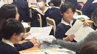 国語の学習です。物語文「大造じいさんとがん」の読み取りでした。近くの友だちと意見交換しながら進めていました。