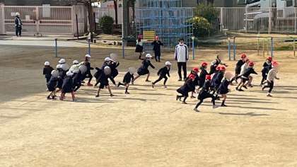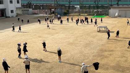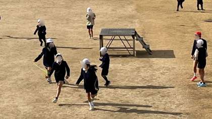 寒いので運動場に出て遊んでいる子は少なめですが、学級遊びをしている学級があったり縄跳びしている子たちがいたり、楽しそうです。