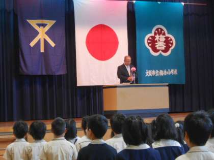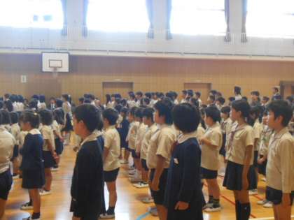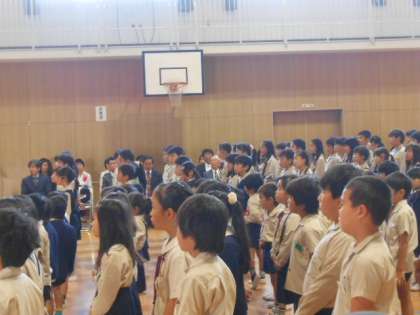 1時間目は創立90周年の集会です。
