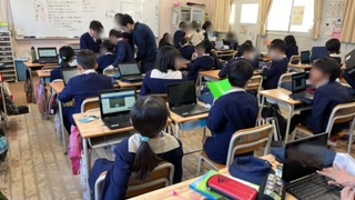 ニ学期に頑張ったことや今後、頑張ってほしいことなどを話しながら各自に「あゆみ」が手渡されていました。待っている人たちはスタディサプリの設定をしていました。