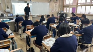 社会科の歴史の学習です。満州事変について説明していました。とても静かに集中していました。