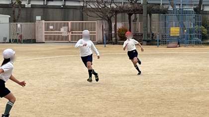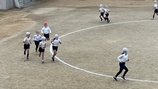 体育の学習です。じっとしていられない寒さです。準備運動の鬼ごっこでも持久走でもしっかり走っていました。