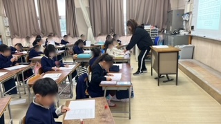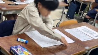 国語の音読カードを新しく作っていました。ノリを適量つけて台紙とカードの辺が平行になるように丁寧に貼っていました。とても上手になりました。