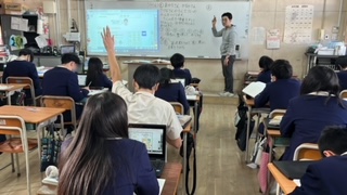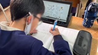 算数の学習で、「場合の数」の単元です。例えば、3人でリレーをする時、走る順番は何通りあるかということを計算で考えます。タブレット端末を活用して考えています。