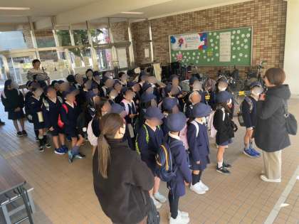 3年生が無事帰校しました。給食を食べて5時限目は今日の社会見学を振り返る時間を取る予定です。