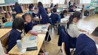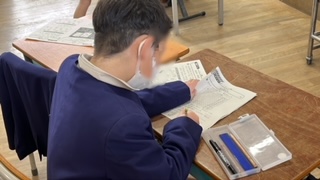 算数の学習です。プリントを何枚かしていました。できたら先生に確認してもらいます。