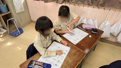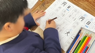 国語の学習で、新出漢字を漢字ノートを使って練習していました。一字一字丁寧に練習していました。