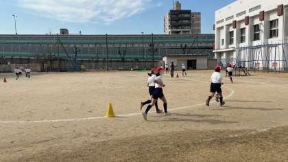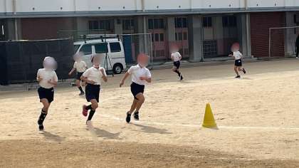 体育で持久走をしていました。どの子も自分のペースで頑張っていました。